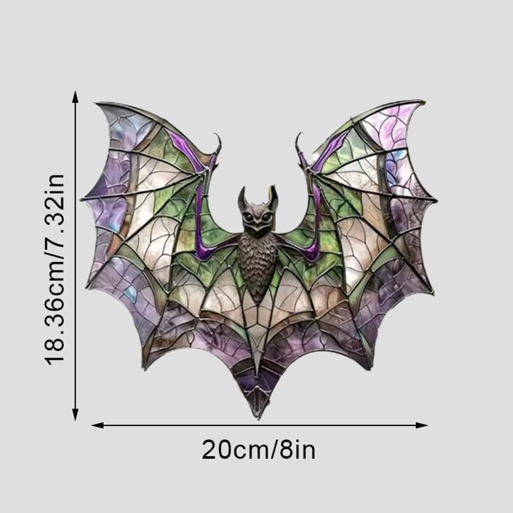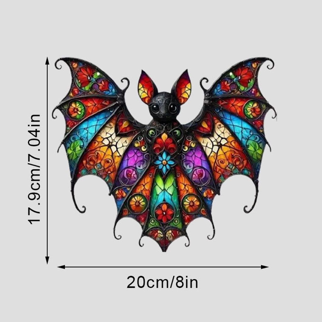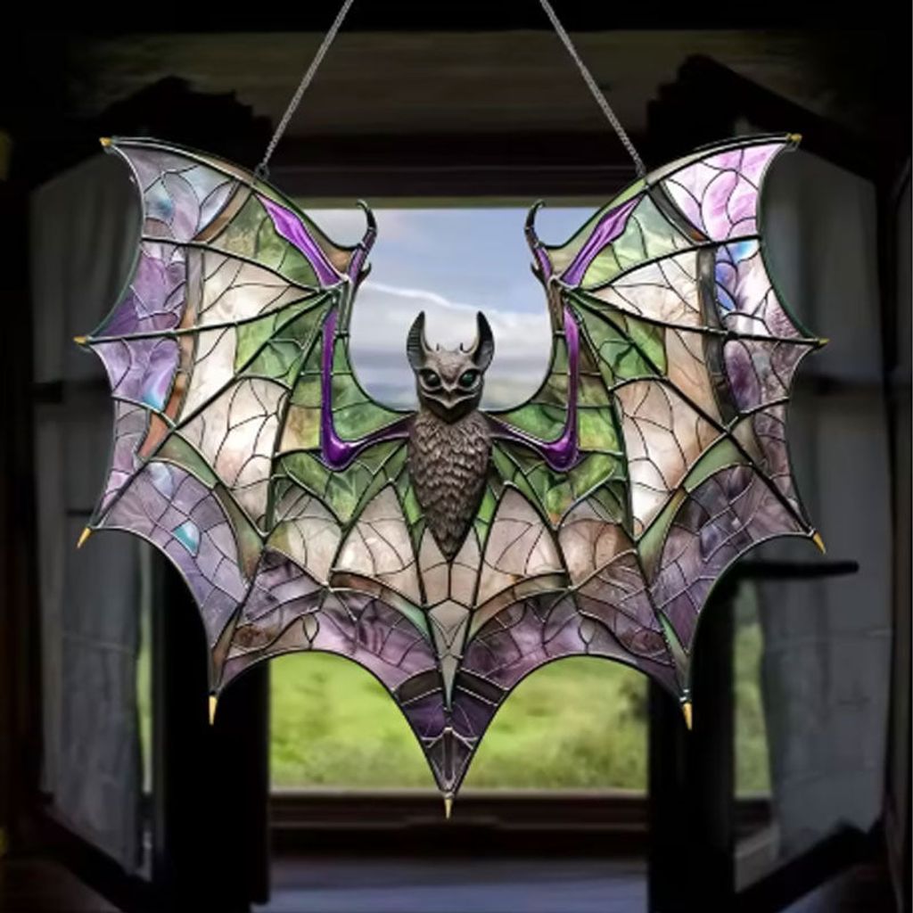 🦇 Bat Design – Flying, hanging, or rainbow-winged bats in stained-glass effect.