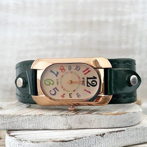 Watches for women with multicolour digits pattern/quirky boho and hippie watch/gift for her/gift for women/bohemian leather jewelry